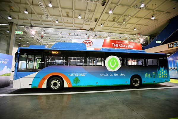 The world’s largest maker of pure electric full size buses, BYD, showed off its latest model and urged European bus operators to get on board the electric bus